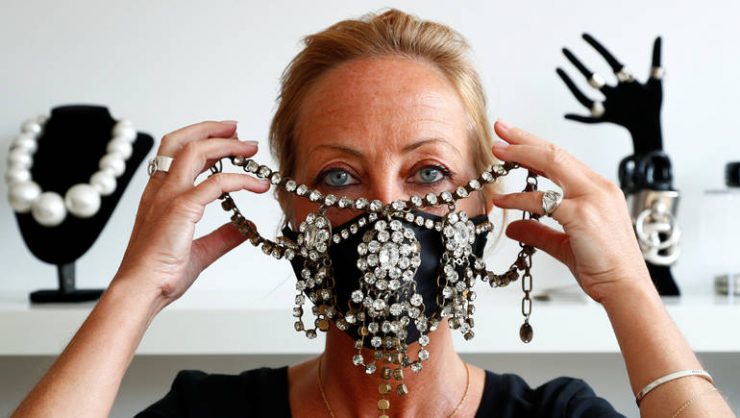 أما مصممة الأزياء والإكسسوارات أوليفيا إينو فقد استغلت موهبتها في صنع كمامات مرصعة بالترتر والفصوص وغيرها من الأشياء اللافتة مثل الزهور المصنوعة من الحرير. ويبدأ سعر الكمامة الواحدة من 75 يورو على حسب المواد المستخدمة والتصميم.